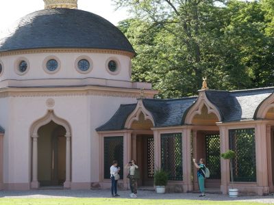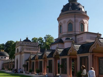 Am nächsten Morgen, vor Antritt der Rückreise haben wir noch den Schlosspark erkundet und den alten Baumbestand im Arboretum bestaunt. Das „Ende der Welt“ und der Paradiesgarten säumten unseren Weg. Wir wagten einen Blick ins Badhaus mit der riesigen Badewanne und bewunderten einen Raum komplett gefliesst mit Delfter Kacheln. Wir verweilten am Apollotempel und genossen den Blick über den Schlosspark und die Sichtachse, die sogenannte Palatina-Achse, die vom Königstuhl bei Heidelberg über den Schwetzinger Schlossgarten bis zur Kalmit verläuft.