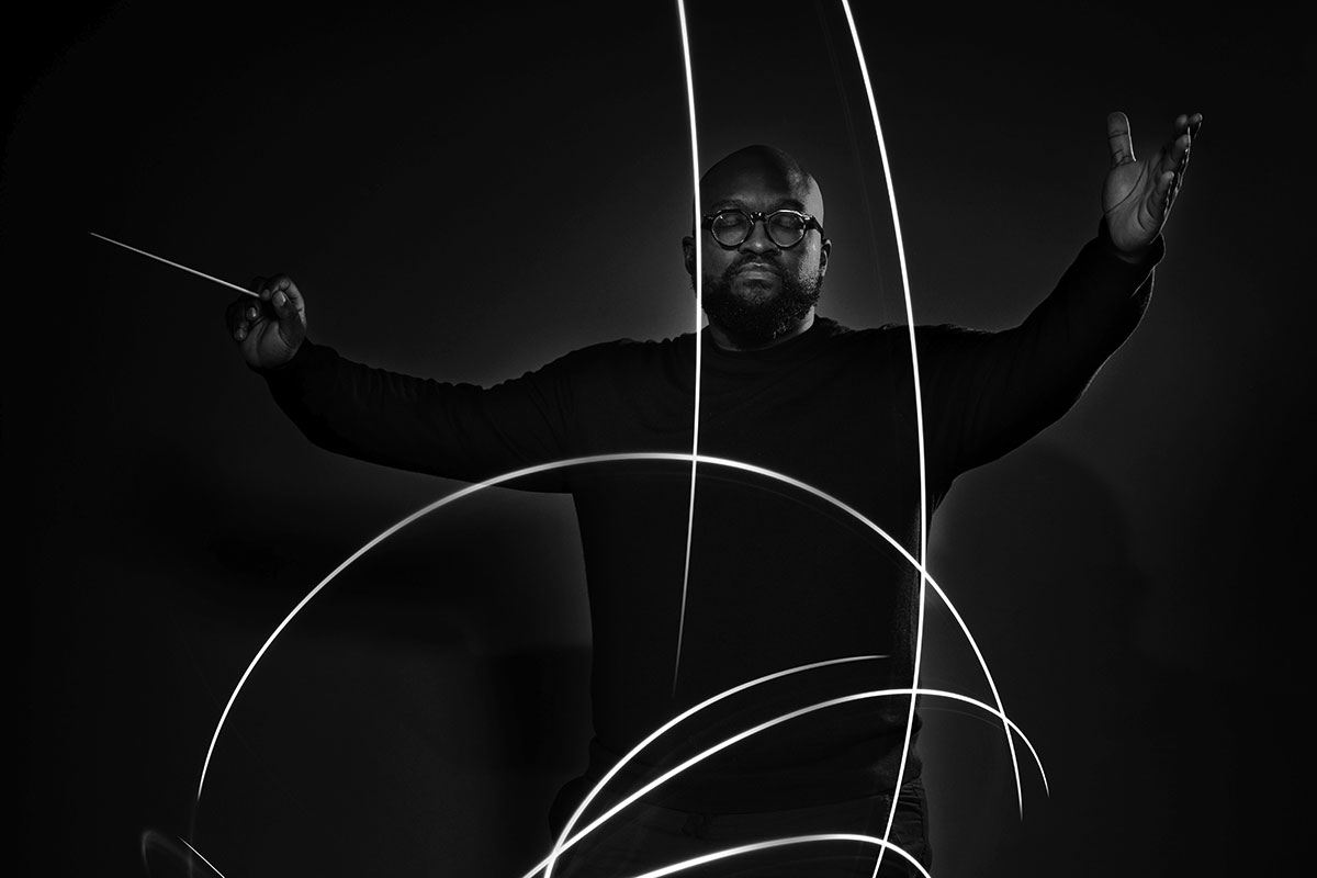 Der in Simbabwe geborene Vimbayi Kaziboni ist wegen seines fundierten Ansatzes und seiner innovativen und durchdachten Gestaltung ein gefragter Dirigent. 2024 dirigierte er das SWR Symphonieorchester Stuttgart. Am Samstag 18.10.2025 leitet er das Klangforum Wien, zu dessen Conductor in Residence er ernannt wurde. Seine Rolle als Dirigent umschreibt er mit den Worten: inspirieren, fördern, führen.